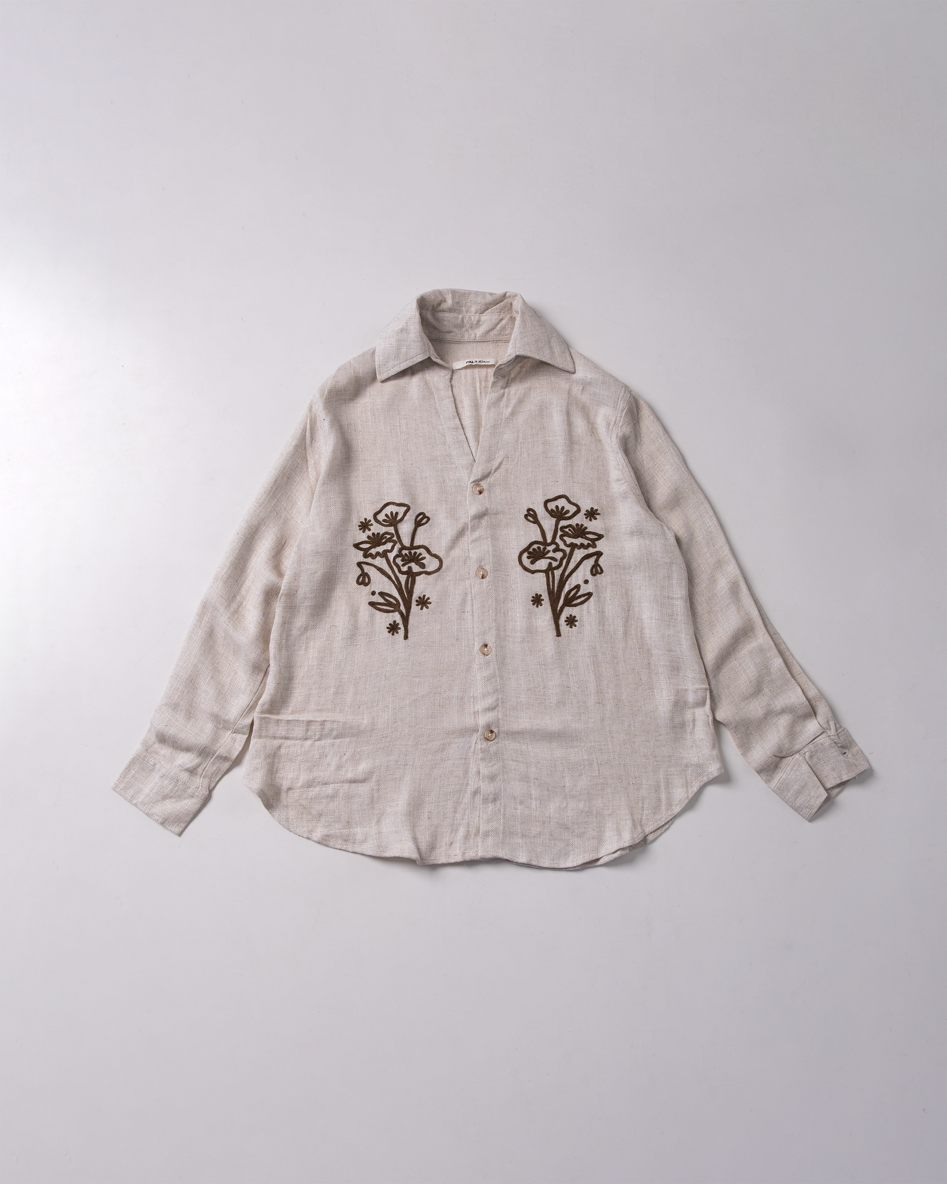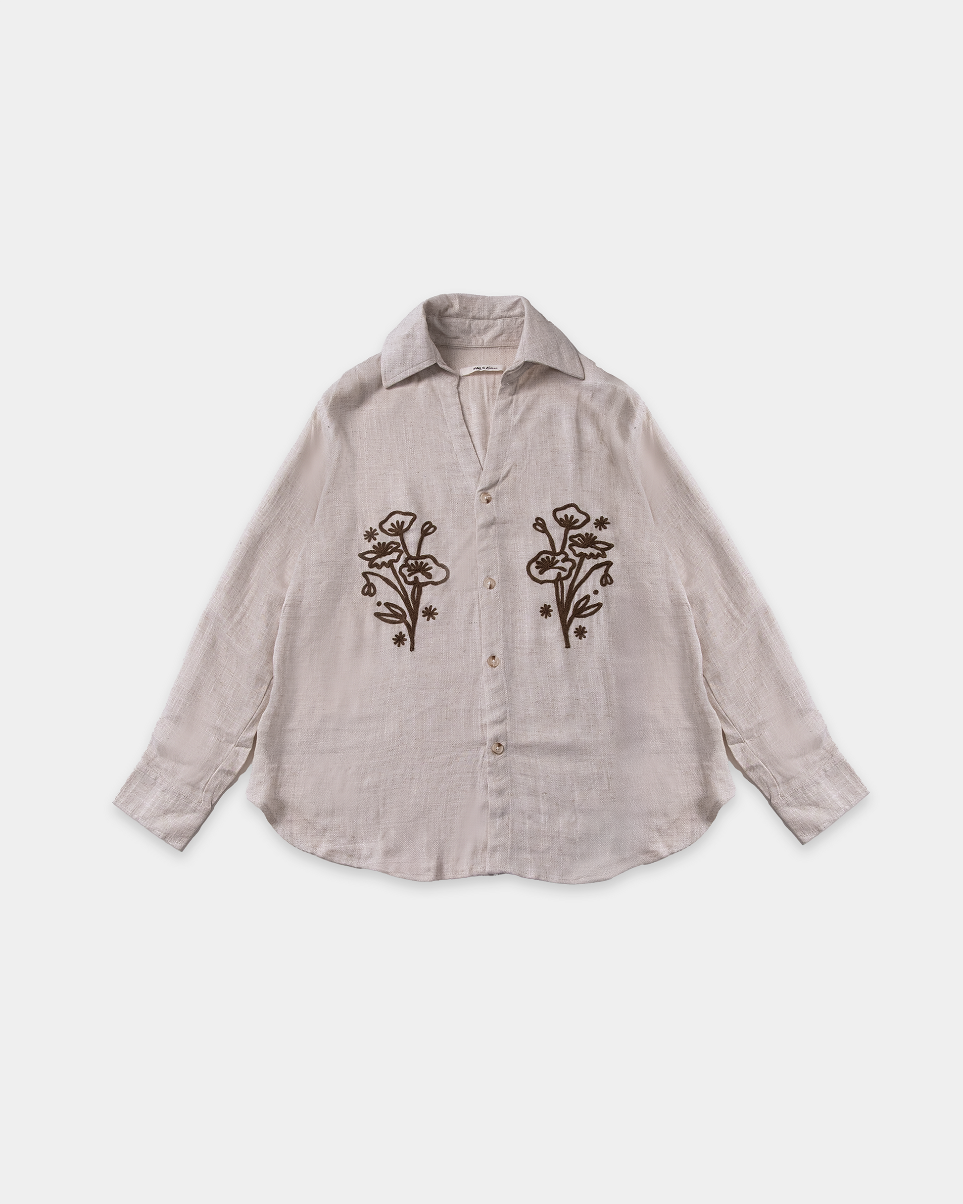 PALS® - Long Shirt Linen Slump is made from premium Linen Slump . it’s cut with dropped shoulders and a cropped hem to create an oversized, long shirt silhouette. Feature with Embrodery Detail